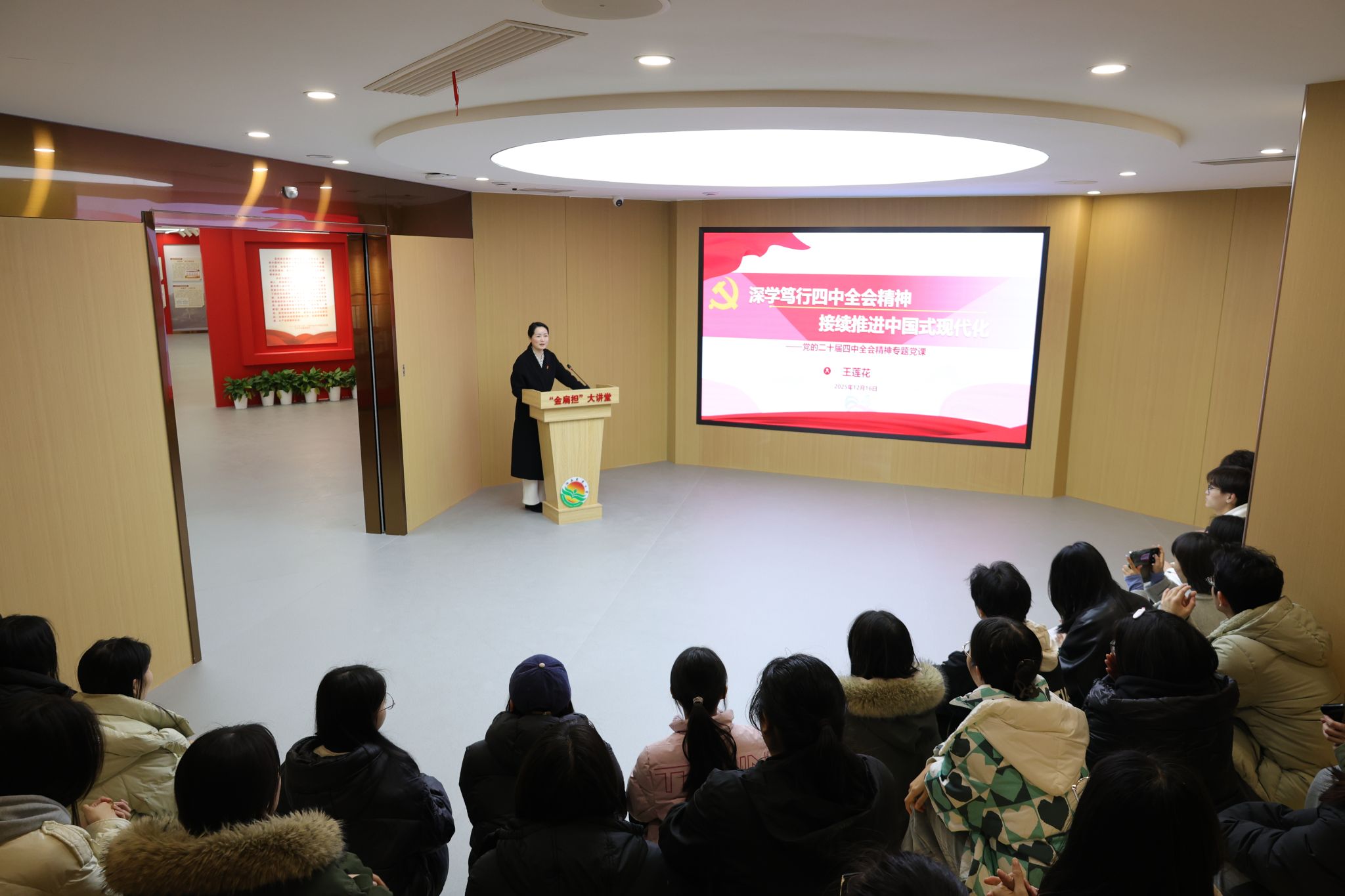 在党建馆内,全体人员随讲解员回顾学校党建工作发展历程与成果,了解各级党组织在党建、落实立德树人、服务农业农村现代化方面的实践。随后,王莲花以“深学笃行四中全会精神,接续推进中国式现代化”为主题,为学生党员讲专题党课。她围绕党的二十届四中全会重大意义、“十四五”辉煌成就、“十五五”战略部署及贯彻全会精神实践要求四个方面,结合农业高校实际和学生党员身份,进行系统阐释与深入解读。她强调,学生党员要将个人发展融入国家现代化建设,厚植爱党爱国情怀,勇担强农兴农使命,努力成为懂农业、爱农村、爱农民的新型人才。