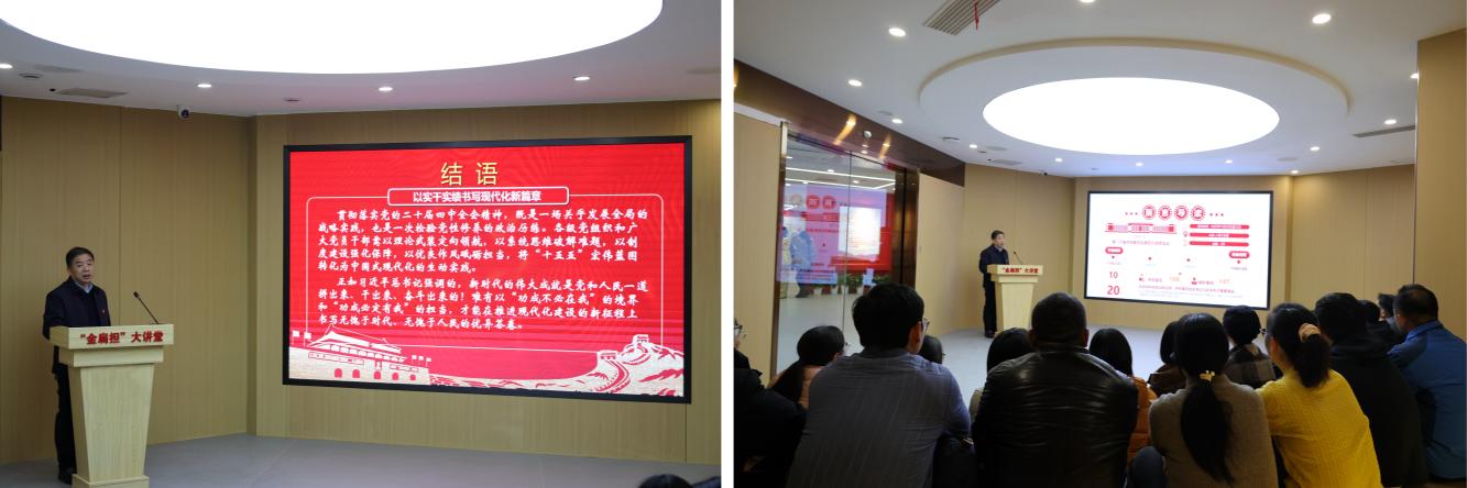 在党建馆内,教师党员在讲解员引导下,系统回顾了学校党建工作的发展历程与显著成效。随后,张庆华结合个人学习体会,以“深学细悟党的二十届四中全会精神,躬身力行服务‘十五五’发展新蓝图”为主题,为教师党员讲授专题党课。他围绕“十四五”发展成就、“十五五”规划的战略意义、中国式现代化的行动纲领以及以实干担当把宏伟蓝图变为美好现实等四个方面,紧密联系农业高校特色与学院发展实际,进行了系统阐释和深入解读。他强调,全体教师党员要将学习贯彻全会精神与落实立德树人根本任务深度融合,把爱党爱国情怀切实转化为知农爱农、强农兴农的自觉行动,不断提升教书育人本领,勇挑新时代“金扁担”,为服务农业强国建设与学院高质量发展贡献坚实力量。